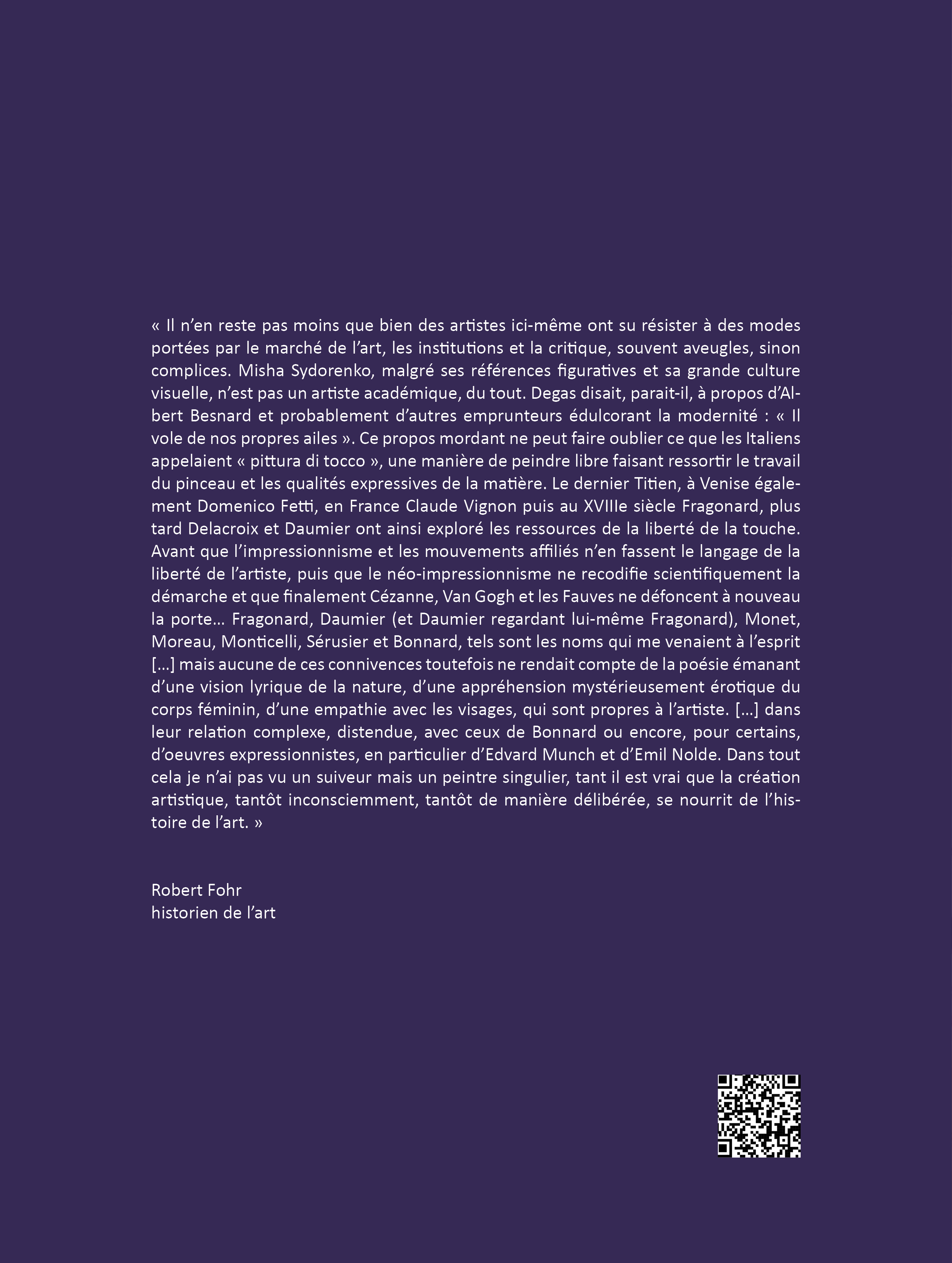 C’est à l’Ermitage de Martine Boulart, lors d’un de ces après-midi intemporels entre gens de bonne éducation où l’on écoute des musiciens et où l’on admire des artistes, que j’ai découvert les peintures de l’artiste ukrainien Misha Sydorenko. Des peintures de paysages du dehors, le jardin, le bassin, le bosquet que l’on retrouvait sur les murs et même le portrait de la maîtresse de maison, nimbées d’imprécision ou de mystère? Quelque soit son nom, cela faisait leur charme... Il y avait là, à l'ombre de leur discrétion, tout ce que le spectateur désire, caresse ou rêve.